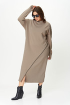Платье макси с центральной отрезной застёжкой на центральную застежку на петли и пуговицы.По переду и спинке цельнокроеные складки на уровне талии. Рукав втачной,одношовный рубашечного типа. По низу рукава пробиты петли и вставлена завязка для фиксации сборки . Воротник рубашечный стояче отложной. В комплект идёт пояс из основной ткани.