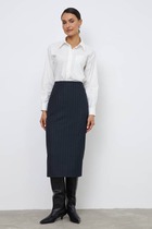 Особое внимание заслуживает рукав — лёгкий, без шва, с изящно ниспадающими краями. Его воздушность придаёт образу загадочность и утончённость, а необычный крой с драпировкой и сборкой по линии плеч делает движения пластичными и грациозными. Фигурный вырез горловины придаёт образу нотку смелости, но остаётся выдержанным и гармоничным.