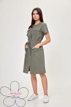 Платье полуприлегающего силуэта с втачными рукавами и рубашечным воротником. Перед с застёжкой на петли и пуговицы по планке. Пояс в комплекте. Перед платья и воротник декорированы дизайнерской вышивкой.