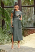 Платье прямого покроя из костюмной ткани. Модель сочетает в себе женственность и удобство.. Горловина переда декорирована планками с дизайнерскими пуговицами.В боковых швах сделаны шлицы для удобства ходьбы. Пояс идёт в комплекте.