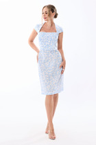 Платье прямого силуэта на бретелях, которые легко  регулируются. Длина макси. Перед и спинка изделия  прямые. Разрезы по боковым швам платья .