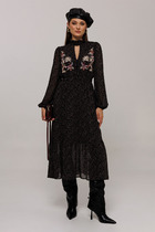 Стильный сарафан длины миди, декорированный дизайнерской печатью. По горловине и пройме окантовка. Отрезная часть юбки по линии талии на сборке, в боковых швах имеются разрезы, что придаёт образу легкость. Линия талии декорирована ремнем.