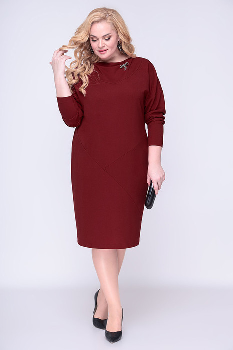 Нарядное однотонное платье на трикотажной подкладке станет красивым дополнением элегантного женственного образа. Универсальное и практичное изделие из трикотажной ткани длиной ниже колена. В этом сезоне безумно актуальными являются наряды со спущенными плечами. Спинка платья со средним швом. Свободный крой в области талии и бёдер дарит приятное чувство уверенности и комфорта. На передней полочке платья есть косые подрезы, кокетка, а в левой боковой части - карман с отрезным бочком. Вырез горловины в виде небольшой качели декорирован съемной брошью (которая может отличаться от фото сайта). Рукав со спущенной линией плеча, длинный. Отличный вариант для офиса и вечернего гардероба, а также и просто для повседневного применения. Такое платье обязательно должно быть в каждом гардеробе!