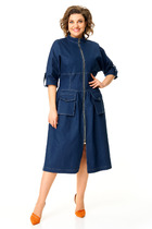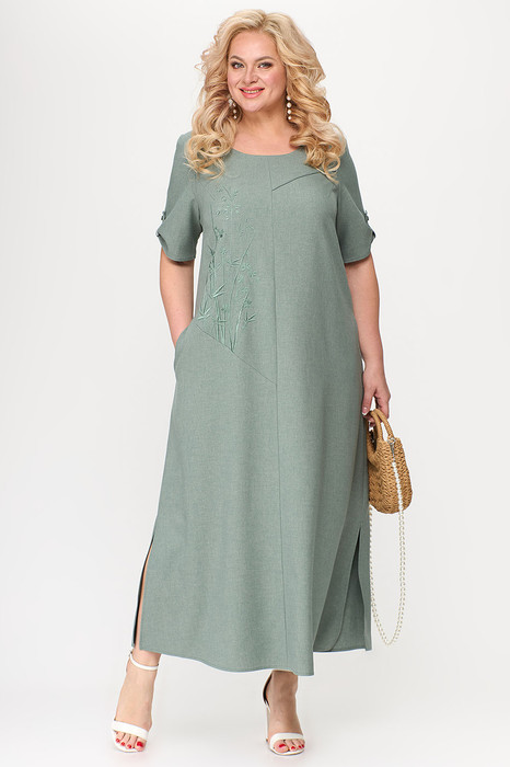 Комфортное платье А-силуэта с  цветочными мотивами смотрится очень оригинально и интересно. Асимметричный перед со средним швом и диагональными подрезами вверху и в области бедер гармонично фрагментируют фигуру и наполняют образ легкостью. В боковых швах есть разрезы и функциональные карманы. Нагрудные вытачки создают прилегание в области груди. Спинка со средним швом, рукав короткий, с патой и пуговицей. Модель украшена изящной вышивкой. Платье идеально впишется в Ваш образ.