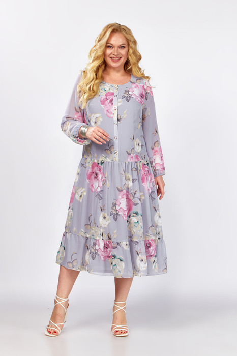 Легкое, воздушное платье из шифона на трикотажной подкладке для женщин подарит ощущение летнего бриза даже в самый знойный день. Этот элегантный наряд обязательно привлечет внимание окружающих! Нежный дизайн ткани добавляет шарм и делает его по-настоящему женственным. Крой А-силуэт нарядного изделия подходит как для повседневного образа, так и для особых случаев. Силуэт модели выделяет женственность фигуры и делает образ стильным. Платье создано для тех, кто предпочитает удобство и стиль в одном флаконе. Миди-длина платья и воланы подчеркнут грацию фигуры и добавят загадочность Вашему образу. Перед платья частично на застежке на петли и пуговицы. Рукав втачной, по низу на резинке. Выбрав эту модель, Вы точно будете выглядеть неповторимо на любых мероприятиях!