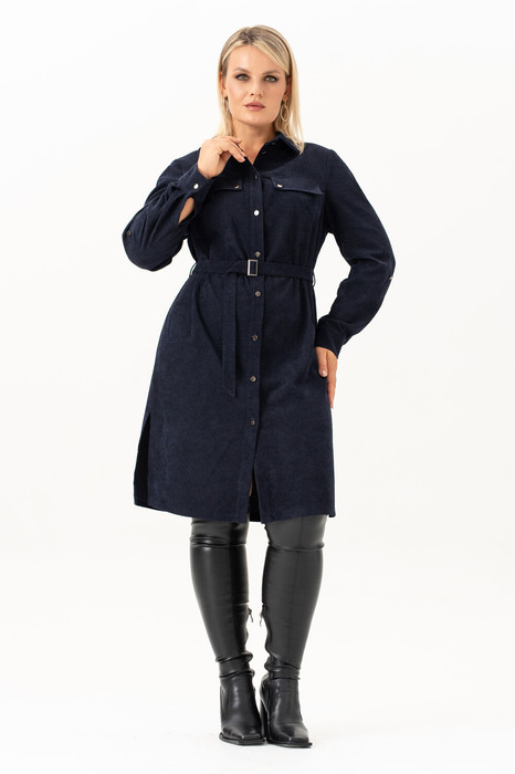 Повседневное женское платье рубашка из вельвета -это сочетание стиля, строгости и утончённости. Спинка со средним швом и разрезами по низу. Универсальное и практичное платье длиной ниже колена, которая будет уместна для любого случая. По переду платья есть нагрудные выточки от пройм и настроченный клапан, который украшен декоративными пуговицами.Также есть карманы в боковых швах. Рукав втачной, длинный, по низу с манжетой и патами. В дополнении к платью идёт пояс . Застёжка спереди на петли и пуговицы на цельнокроеных планках и стояче -отложным воротником на отрезной стойке. Этот вариант вельветового осеннего платья идеален для женщин любого возраста и подходит для любого повода: как деловое на работу, в офис, как нарядное. Женское платье рубашка из штрукса - это отличная базовая модель, которая должна быть в гардеробе каждой девушки.