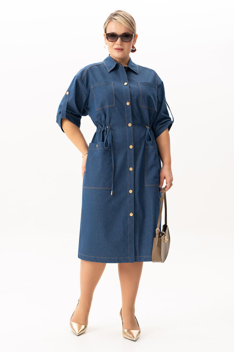 Стильное джинсовое платье больших размеров– это идеальный выбор для женщин, стремящихся сочетать стиль и комфорт в одежде. Модель выполнена из легкого хлопка, что обеспечивает комфорт в течение всего дня. Подходит для различных сезонов — весной и летом оно станет незаменимым элементом гардероба. Этот универсальный вариант представлен в больших размерах, что позволяет каждой женщине найти свой идеальный стиль. Оно прекрасно смотрится с кроссовками, что делает его отличным выбором для активных женщин. С этим нарядом вы можете смело отправляться на деловые встречи или в ресторан, благодаря элегантному крою, аккуратной застежке на петли пуговицы, поясом на кулисе платье скрывает недостатки фигуры, придавая ей стройный вид, а наличие карманов добавляет практичности. По спинке имеется средний шов, шлица и отлитная кокетка в верхней части спинки. Особенностью этой модели является декоративная кокетка , напоминающая плащ. Рукава с патами на петли пуговицы, позволяют регулировать длину , гармонично дополняя классический фасон платья с воротником рубашечного типа. Длина ниже колен создает образ, который легко сочетать с различными аксессуарами. Вечером такое платье отлично дополнит вечерний образ, а днем подчеркнет вашу индивидуальность и профессионализм.