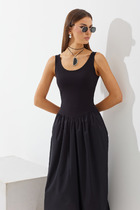 Vilatte Платье тонкой вязки из хлопка с нейлоном D32.106 черный
