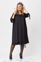 Платье женское А-образного силуэта (расширенное к низу). Расширение по низу достигается за счёт волана. Платье выполнено из шифона на трикотажной подкладке.