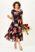 Романтичное платье приталенного силуэта из легкой ткани Ниагара. Длинный втачной рукав со спущенным плечом, оканчивается притачной манжетой. Округлая горловина оформлена стойкой, переходящей в планку с застежкой на петли и пуговицы. Модель отрезная по линии талии, присборена на эластичную резинку. Юбка расклешенного силуэта. Низ ровный, по бокам разрезы. Пояс из основной ткани в комплекте.