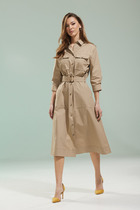 Детали: трапециевидный силуэт, нагрудные вытачки, средние швы переда и спинки, боковые карманы, подкладка платья- 100% хлопок.