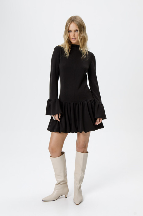 Детали: прилегающий силуэт, цельнокроеный воротник, талиевые и нагрудные вытачки, застежка на потайную молнию по спинке, рукава длинные с фигурной манжетой