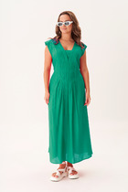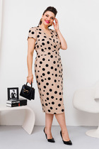 Летящее женственное платье станет идеальным дополнением к вашему образу на Новый год. Эта модель универсальна и подходит для любого праздника, придавая вам женственность, элегантность и праздничное настроение. Платье свободного кроя с длинными рукавами и манжетами по низу. V-образный вырез с эффектом запаха подчеркивает зону декольте. Изделие на подкладке, в комплекте идет атласный пояс.