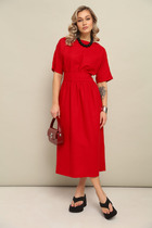 Романтичное платье свободного силуэта на запах длиной миди. Платье отрезное по линии талии и сборкой по юбке. Рукав вточной одношовный 3/4 на резинке снизу. Длина изделия - 119 см. Длина рукава - 40 см.