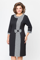 Стильное платье прилегающего силуэта, отрезное по линии талии, выполнено из экокожи и трикотажного полотна. Горловина округлой формы. Длинные втачные рукава. Юбка спереди с подрезом на металлическую молнию, с возможностью регулировать высоту разреза. Застёжка по спинке в среднем шве на потайную молнию.