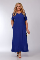 Платье женское предназначено для повседневной носки, но может использоваться как нарядное. Платье женское, полу прилегающего силуэта, длиной ниже колена. Перед отрезной по линии талии, верхняя часть переда с 2-мя таллиевыми вытачками с втачной V-образной вставкой; нижняя часть с 5-мя таллиевыми вытачками. Спинка отрезная по линии талии; верхняя часть с 2-мя таллиевыми вытачками с V-образной вставкой по центру, нижняя часть с 2-мя таллиевыми вытачками. В боковых швах обработаны карманы. Горловина с фигурным вырезом, обточная без воротника. Рукав короткий одно шовный втачной. Платье на подкладке. Платье с плечевыми накладками. Длина спинки от выреза 105 см, длина рукава 24 см.