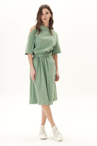 На лифе заложены небольшие защипы. Низ рукава собран на резинку.Это платье способно смоделировать фигуру, например, скрыть животик, вытянуть силуэт или подчеркнуть зону декольте. Отлично дополнит ваш гардероб.