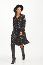 Платье-халат из тонкой плательной ткани софт с полукруглым запахом, украшенный воланами. Без подклада.