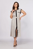 Кожаное платье - определненно must have в гардеробе любой ультрамодной девушки! Выбирайте небанальный оттенок жемчужно-серого, Объемный волан и акцент на талии придадут образу женственности. Весь офис будет покорен!