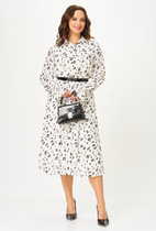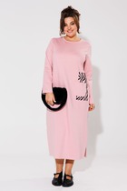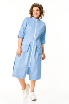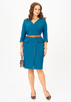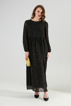 Платье женское прямого силуэта длины миди, с втачным рукавом. Горловина с цельнокроеным воротником стойкой. По горловине и талии вытачки. По переду декоративная планка. Рукав длинный с декоративной планкой из пайеток. По спинке средний шов и потайная застежка молния. В левом боковом шве разрез.