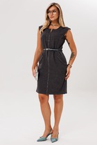 Платье женское полуприлегающего силуэта длины миди подчеркнет фигуру, а цельнокроеный рукав длиной 7/8 придаст образу утонченность. Округлая горловина добавляет мягкости, а разрез и застежка молния по спинке в среднем шве придает нотку игривости и удобства. В боковых швах карманы. Съемное украшение в виде цветка замечательное дополнение, для создания разнообразных образов.