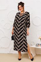 Платье отрезное по линии талии. Перед лифа со средним швом и разрезом с застёжкой по горловине на навесную петлю и декоративную пуговицу. Юбка со сборкой по линии талии и карманами в боковых швах. По низу юбки пришита фирменная эмблема «SWАLLOW». Рукав цельнокроеный, отрезной по линии проймы, со сборкой по окату. Низ рукава собран на эластичную тесьму.