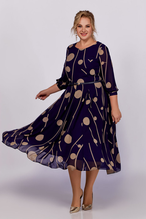 Заказать Платье Swallow 790 темно-синий+бежевый принт