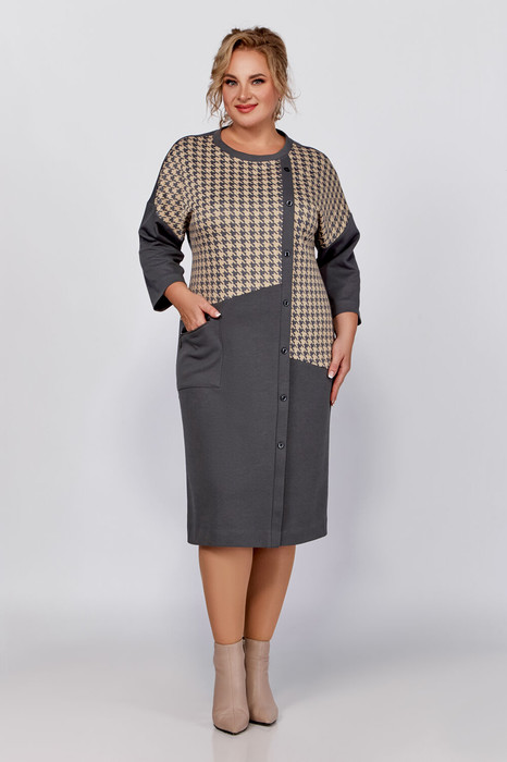 Совместные покупки Магнитогорск Женская одежда Платья — Платье Swallow 791 светлый графит+серо-бежевая гусиная лапка