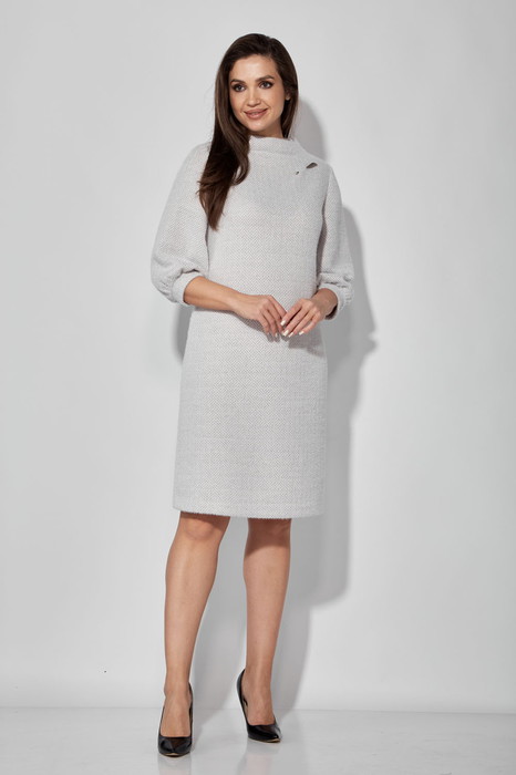 Элегантное платье А-образного силуэта длиной выше колена из уютного трикотажного полотна. Рукав втачной 3/4 фантазийной формы. Низ рукава присборен на мягкую манжету. Горловина оформлена мягкой цельнокроеной стойкой. В качестве декора -съемная брошь. Длина платья-44-48р 92 см, 50-54 р 97 см ВНИМАНИЕ! Брошь может отличаться от фото!