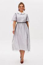 Платье женское, А-силуэта, покроя реглан, без рукава. Плечо прикрыто удлиненным крылышком. Вырез горловины круглой формы. По спинке застежка на навесную петлю и пуговицу и вырез "капля" Перед и спинка на подкладке.