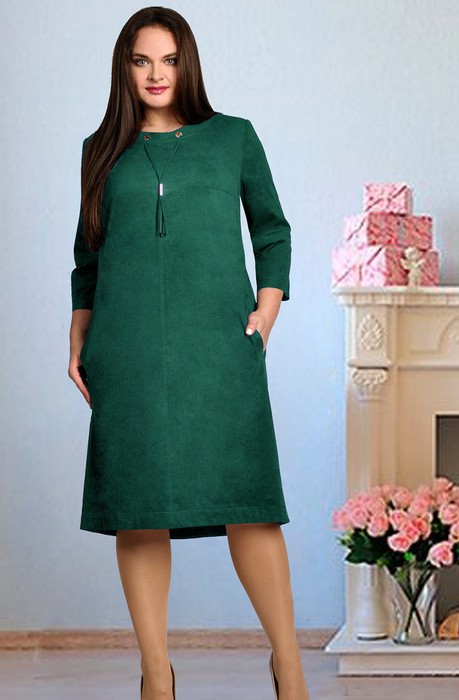 Cтильное замшевое платье. На переде обработаны два внутренних кармана с листочками. Спинка немного удлинена по отношению к переду. Стильным акцентом служит замшевое украшение-кисточка. Материал тянется хорошо. Длина от центра горловины спинки до низа для размеров 48,50 - 101 см, для 52,54,56 -103 см, для 58,60,62,64,66,68 - 109 см, длина рукава 47,5 см.