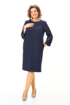 Стильное платье полуприлегающего силуэта выполнено из плотного трикотажного полотна. Горловина оформлена отложным воротником переходящим в планку с застежкой на петли и пуговицы. Длинный втачной рукав. Модель оформлена втачными лампасами с леопардовым принтом. Низ ровный, по бокам шлицы.
