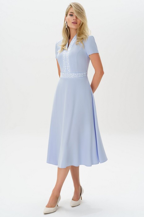 Летние платья с дизайнерской вышивкой – это всегда восхитительные и женственные образы, позволяющие выглядеть роскошно и привлекательно. Платье женское из костюмно-плательной ткани, силуэта песочные часы, отрезное по линии талии с притачным поясом, длиной миди, с декоративной вышивкой.