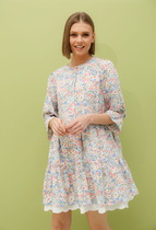 Длина по среднему шву спинки с воланом - 93,0 см (±2,0 см), Длина по среднему шву спинки до шва притачивания пояса -35,0 см (±1,0 см), Длина рукава - 35,0 см (±1,0 см), Ширина на уровне линии груди - 46,0 см (±1,0 см), Ширина на уровне линии талии - 38,0 см (±1,0 см), Ширина на уровне линии бедер - 51,0 см (±1,0 см), Ширина рукава - 19,0 см (±1,0 см), Длина плеча - 4,5 см (±0,5 см).