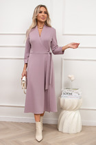 Женственное платье приталенного силуэта. Горловина оформлена отложным воротником на стойке. По переду втачная планка с застежкой на петли и пуговицы. Длинный втачной рукав оканчивается притачной манжетой. Модель отрезная по линии талии, с боку застежка на потайную молнию. Юбка дополнена встречными складками. Пояс из основной ткани в комплекте.