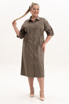 22.03 Vilatte Платье свободное с V-вырезом из 100% хлопка с поясом и разрезом D