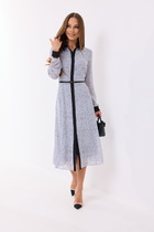 Женственное платье приталенного силуэта выполнено из креп-шифона. Округлая горловина на внутренней обтачке. Длинный втачной рукав присобран на эластичную резинку. Модель отрезная по линии талии, присобрана на резинку. Юбка на подкладке. Низ ровный, без разрезов.