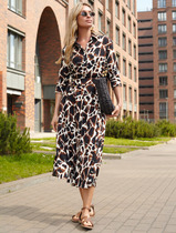 Vilatte Платье из вискозы твил D22.224 бежевый-коричневый