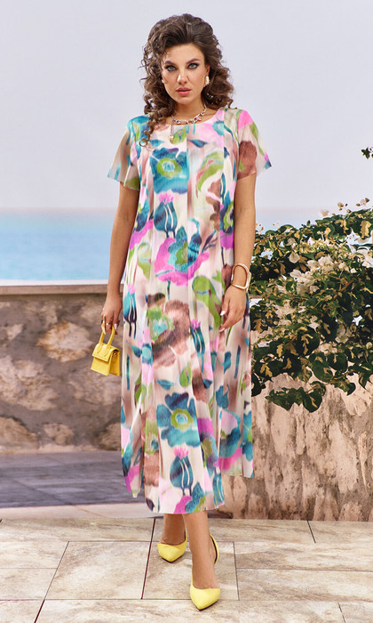Платье, которое вскружит голову! Оно восхитительно смотрится на фигуре, подчеркивая ваши формы и скрывая недостатки. Идеально подойдёт на жаркую летнюю погоду как для повседневной носки, так и для непринужденных прогулок и летних торжеств. Летящий силуэт, который всегда актуален и универсален, а игра фактур ткани делает модель уникальной. Платье А-силуэта, горловина округлой формы. По переду и спинке платья вертикальные подрезы переходящие в декоративные клинья. Рукав втачной, короткий. Низ рукава и платья с эффектом необработанных срезов.