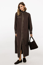 Стильное и комфортное платье из трикотажного полотна идеально подойдёт как для повседневной носки, так и для торжественных выходов. Платье подчеркивает достоинства фигуры и успешно скрывает все недостатки. Платье прилегающего силуэта длинны «миди» с округлой горловиной с отделкой в виде декоративной отделочной тесьмы. По переду платья нагрудные вытачки, отделочные клапана карманов с декоративной отделкой в виде тесьмы. По спинке застёжка на декоративную тесьму-молнию. Рукав в платье втачной, длинный. Платье на подкладке.