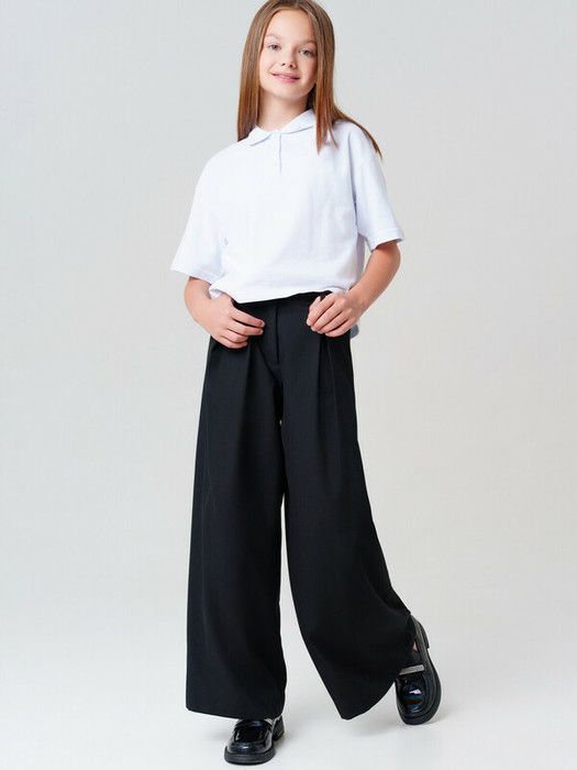 Идеальные брюки для школы, сочетающие комфорт и аккуратный внешний вид. Модель с посадкой Wide leg — это широкие брюки с расслабленной посадкой, максимальной длиной и акцентом на талии. Обеспечивает свободу движений, а застежка на молнию и пуговицу позволяет легко регулировать посадку по фигуре.