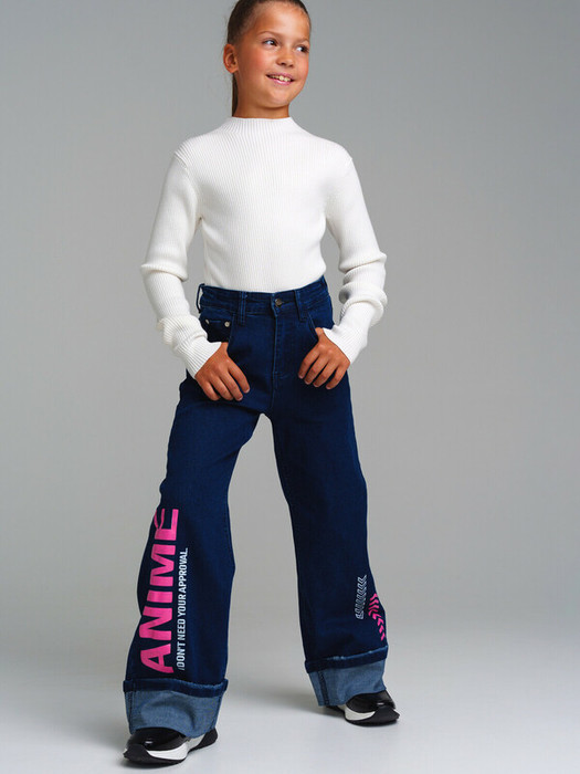 Джинсы-трубы из эластичного денима. Модель свободного кроя с широкими штанинами. Комфортная посадка за счет внутренней утяжки. Застежка на молнию и пуговицу.