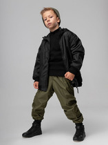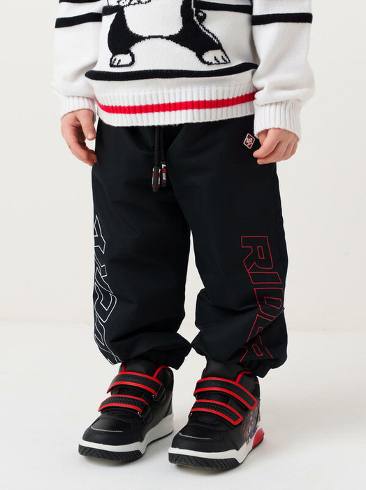 Брюки детские для мальчика. Ткань верха с ветрозащитным и водоотталкивающим покрытием. Внутри мягкая флисовая подкладка, в нижней части — таффета. Пояс на широкой резинке, внутри — шнурок с брендированными наконечниками. Брюки оснащены удобными боковыми карманами. Манжеты на резинке внизу для лучшей посадки. Подходят для активного отдыха и повседневной носки.