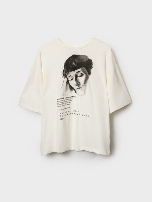 Женская футболка оверсайз. Модель из мягкого хлопкового трикотажа джерси. Вырез горловины с эластичной окантовкой. На передней части — выразительный принт. Это работа Николая Тырсы, созданная в 1928 году, под названием «Лицо Анны Ахматовой».