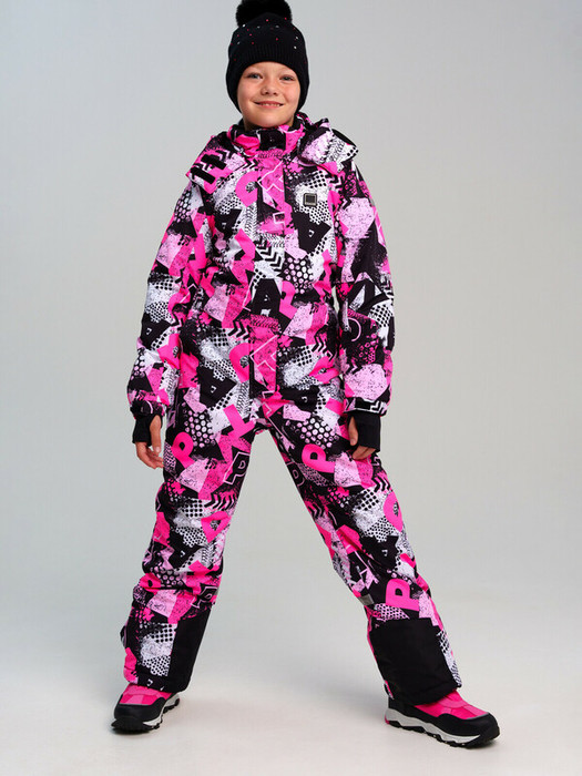 Мембранный материал делает этот яркий и модный комбинезон непромокаемым: мембрана не пропускает влагу снаружи, но выводит её изнутри, что крайне важно во время подвижных игр и занятий спортом.