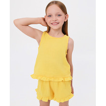 Легкий детский хлопковый костюм для мальчика. Рубашка прямого кроя с коротким рукавом и застежкой на кнопки. Классический воротник, накладные карманы. Свободные шорты на резинке со шнурком для регулировки. Удобные боковые карманы и карманы-карго.