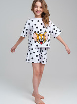 Пижама: футболка, шорты из качественного и приятного на ощупь трикотажа джерси. Высокое содержание хлопка. Благодаря наличию эластана в составе ткани изделие проще в уходе и держит форму. Карманы в боковых швах. Эластичный пояс со шнурком.