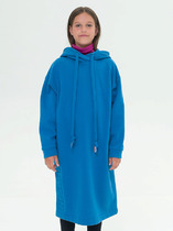 Пляжное оверсайз платье для девочки подростка. Модель в длине мини, выполнена из комбинации хлопкового трикотажа джерси и сетки. На груди размещён небольшой логотип в виде жаккардовой нашивки. Можно составить family look cо взрослым вариантом аналогичного дизайна.