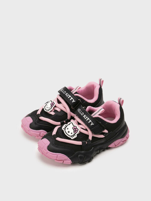Кроссовки детские для девочки. Кроссовки  выполнены из искусственной кожи, обладающей высокими эксплуатационными свойствами, и дышащего текстиля. Кроссовки декорированы объемными контрастными шнурками и патчем HELLO KITTY. В носочной части обуви стоит текстильная подкладка c высоким содержанием хлопка 80%, которая обладает высокой гигроскопичностью. В пяточной части обуви текстильная подкладка обладает хорошей износостойкостью.  Эластичные шнурки и липучка создают удобство при обувании и надежно фиксируют ногу. Профилированная стелька из свиной кожи с анатомической формой подсводника обеспечивает правильную нагрузку на стопу. Формоустойчивый задник поддерживает стопу в правильном положении. Эргономичная форма колодки обеспечивает правильное формирование стопы ребенка. Двухсоставная подошва из ТПР  гибкая, не скользит и устойчива к истиранию. Имеются светоотражающие элементы.