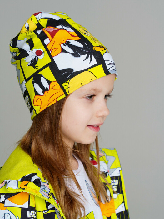 Шапка из качественного и приятного на ощупь трикотажа джерси. Высокое содержание хлопка 95%. Благодаря наличию эластана в составе ткани изделие проще в уходе и держит форму.
